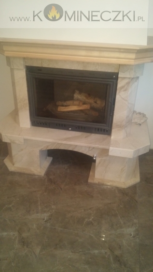 Obudowa kominka przedstawionego na zdjęciu wykonana jest z marmuru naturalnego DAYNO REALE
