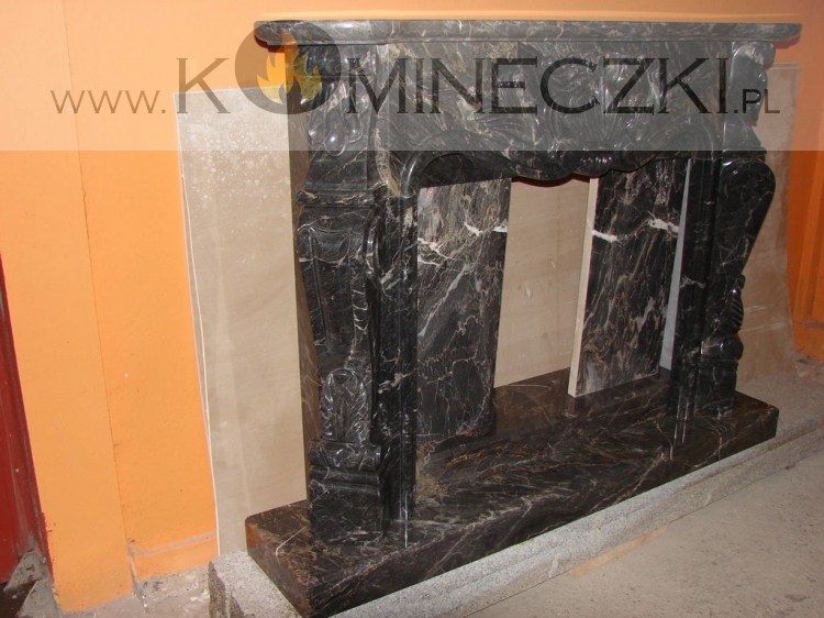 Obudowa kominka przedstawionego na zdjęciu wykonana jest z kamienia naturalnego.