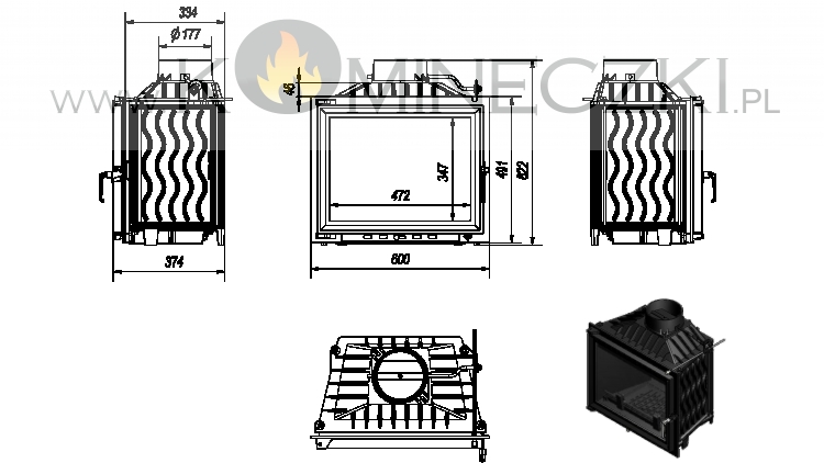 Klasyczny front wkładu wyposażony w ceramikę żaroodporną wytrzymująca temperaturę do 800°C.
