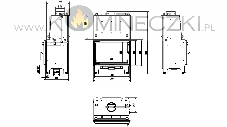 Zamontowana we wkładzie wężownica, służy do zabezpieczenia kominka przed przegrzaniem (króciec wejścia/ wyjścia 1⁄2”).