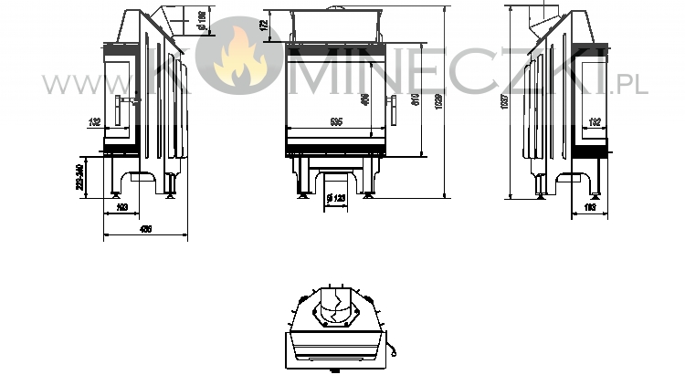 Wbudowany dolot powietrza fi 125, który zapewnia doprowadzenie świeżego powietrza do paleniska z zewnątrz budynku, co wpływa na lepsze spalanie.
