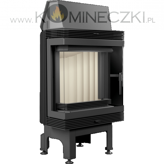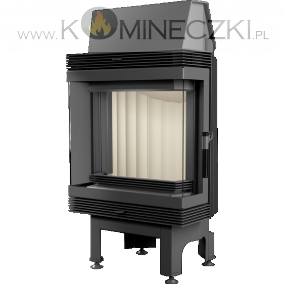 Wkład kominkowy z dwoma szybami zestawionymi ze sobą pod kątem prostym (szyby łączone bez szprosa).