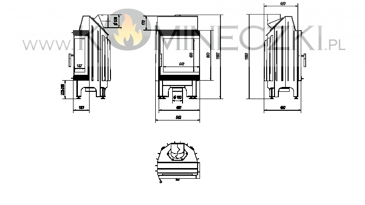 Wbudowany dolot powietrza fi 125, który zapewnia doprowadzenie świeżego powietrza do paleniska z zewnątrz budynku, co wpływa na lepsze spalanie.