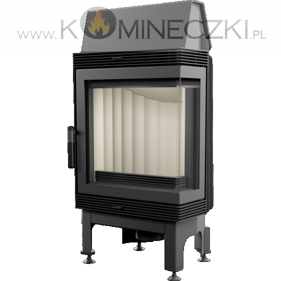 Wkład kominkowy z dwoma szybami zestawionymi ze sobą pod kątem prostym (szyby łączone bez szprosa).