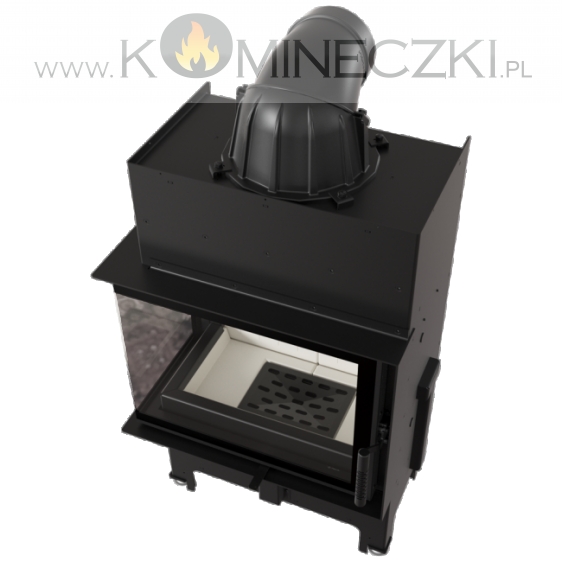 Wkład o ciekawym kształcie, z bocznym przeszkleniem. Dzięki dwustronnej wizji ognia i delikatnej ramie frontowej doskonale wpisuje się w stylistykę nowoczesnych wnętrz. Tego typu kominek jest często wybierany w przypadku otwartych pomieszczeń, w których łączone są różne przestrzenie, np. salon z jadalnią. Zastosowana w kominku specjalnie profilowana płyta dolna sprawia, że mieści on w sobie większą ilość drewna. Nowoczesne rozwiązania zastosowane w urządzeniu gwarantują oszczędność energii i sprawiają, że jego obsługa i czyszczenie są bezproblemowe.