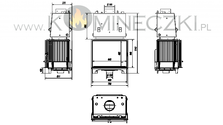 Dodatkowo posiada wyjmowany płotek, który zabezpiecza przed wypadnięciem drewna z paleniska oraz ułatwia czyszczenie kominka.