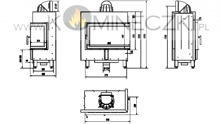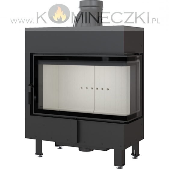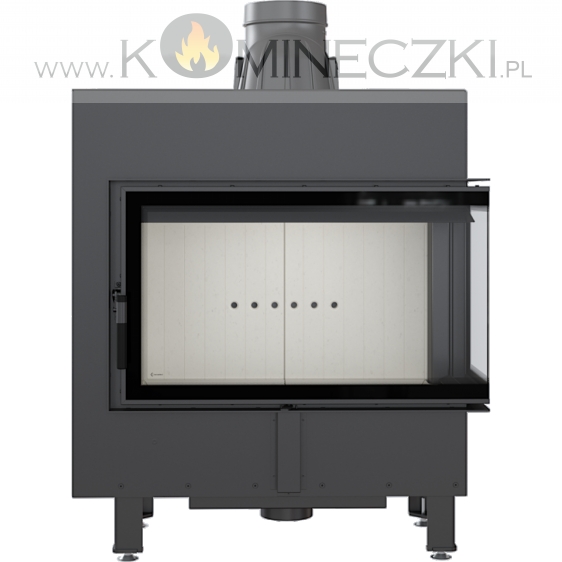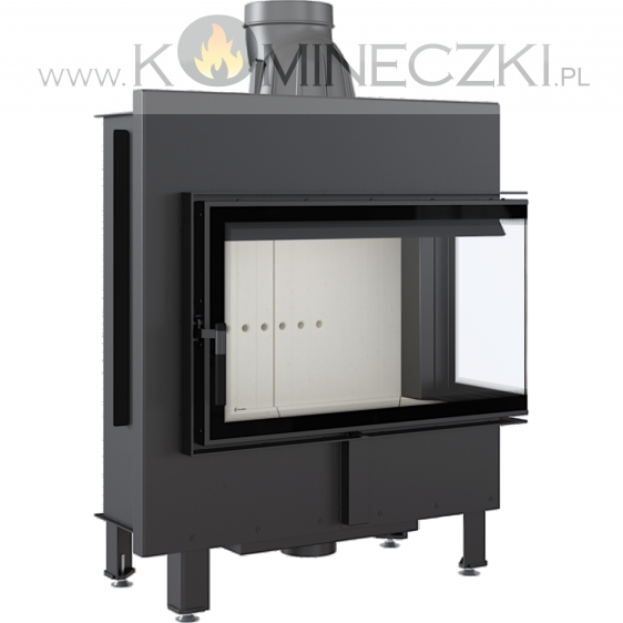 Wkład o ciekawym kształcie, z bocznym przeszkleniem. Dzięki dwustronnej wizji ognia i delikatnej ramie frontowej doskonale wpisuje się w stylistykę nowoczesnych wnętrz. Tego typu kominek jest często wybierany w przypadku otwartych pomieszczeń, w których łączone są różne przestrzenie, np. salon z jadalnią. Zastosowana w kominku specjalnie profilowana płyta dolna sprawia, że mieści on w sobie większą ilość drewna. Nowoczesne rozwiązania zastosowane w urządzeniu gwarantują oszczędność energii i sprawiają, że jego obsługa i czyszczenie są bezproblemowe.