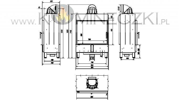 Front wkładu wyposażony w szybę żaroodporna wytrzymująca temperaturę do 800°C.