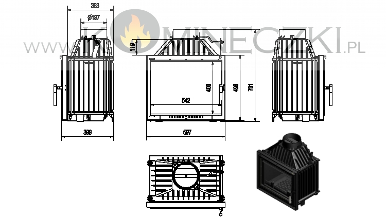 Maksymalne wykorzystanie ciepła dzięki gęsto rozmieszczonym radiatorom oraz ściankom paleniska wykonanym z wysokiej jakości żeliwa o grubości 8 mm.