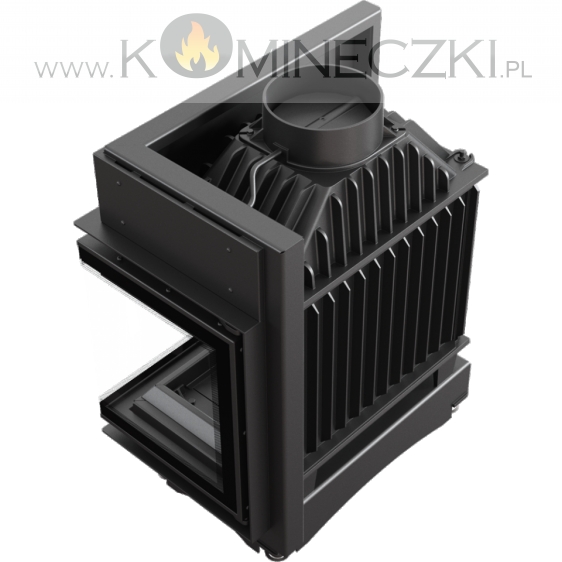 Wkład kominkowy z dwoma szybami zestawionymi ze sobą pod kątem prostym (szyby łączone bez szprosa).