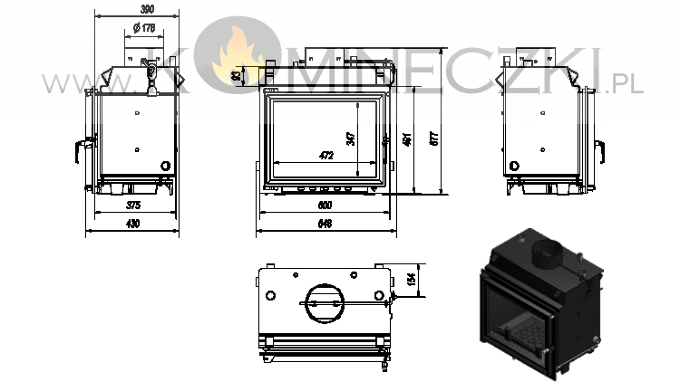 Klasyczny front wkładu wyposażony w ceramikę żaroodporna wytrzymującą temperaturę do 800°C.