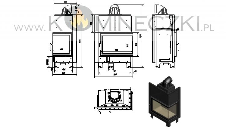 Wkład bezrusztowy - dopalanie na popiele, co oznacza, że opał wypala się na drobny popiół, którego pozostaje minimalna ilość. Uzyskana w ten sposób energia cieplna z drewna zostaje maksymalnie wykorzystana. Płyta dolna wkładu znacznie obniżona w stosunku do drzwi.
