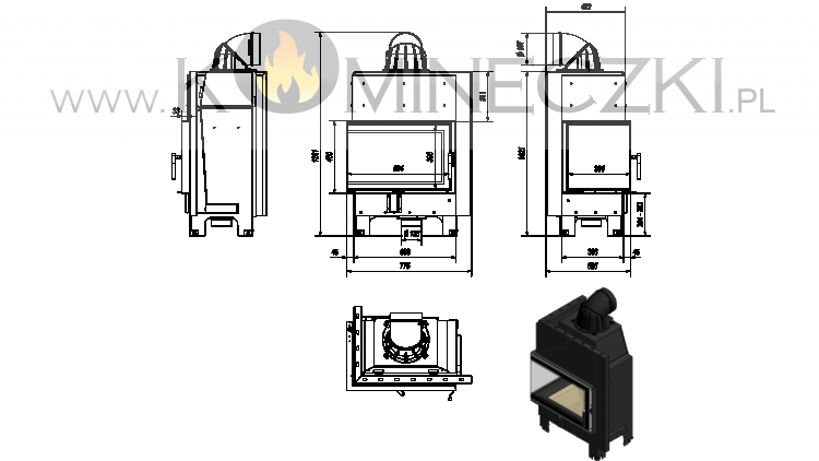 Wkład bezrusztowy - dopalanie na popiele, co oznacza, że opał wypala się na drobny popiół, którego pozostaje minimalna ilość. Uzyskana w ten sposób energia cieplna z drewna zostaje maksymalnie wykorzystana. Płyta dolna wkładu znacznie obniżona w stosunku do drzwi.