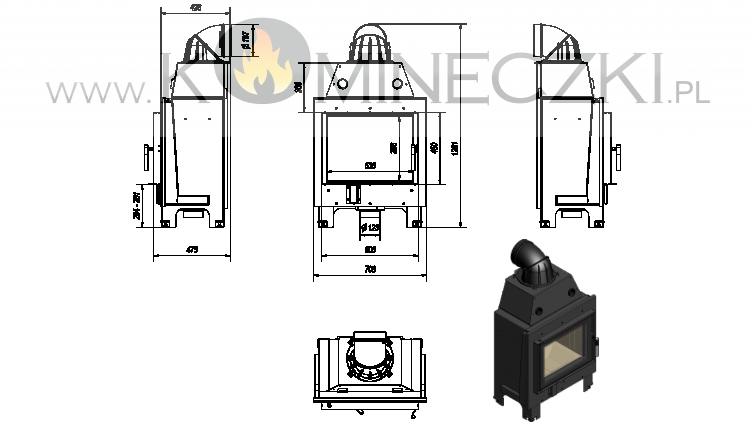 Wysoki czopuch i poprzecznie umieszczone płomieniówki - zwiększają powierzchnię wymiany ciepła pomiędzy wkładem a otoczeniem. Obniżenie temperatury spalin przyczynia się do zwiększenia sprawności urządzenia.