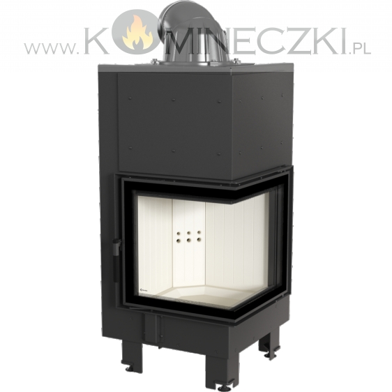 Wkład kominkowy z dwoma szybami zestawionymi ze sobą pod kątem prostym (szyby łączone bez szprosa).