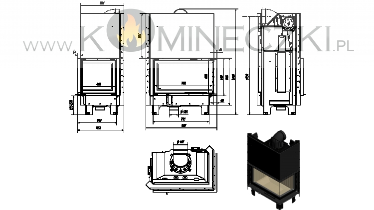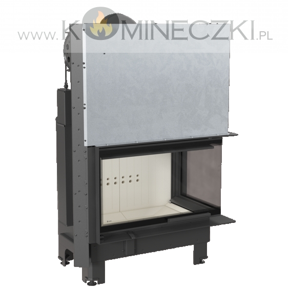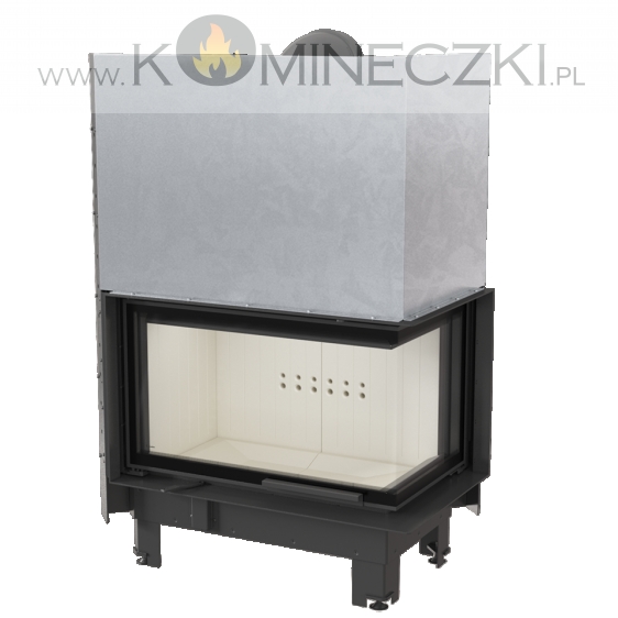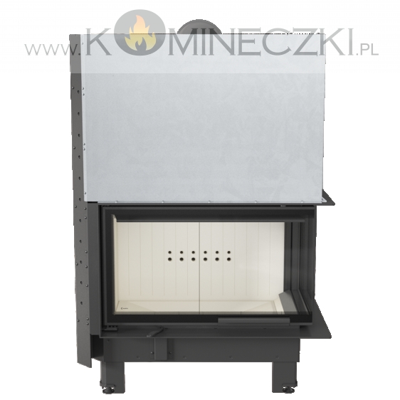 Wkład kominkowy z dwoma szybami zestawionymi ze sobą pod kątem prostym (szyby łączone bez szprosa).
