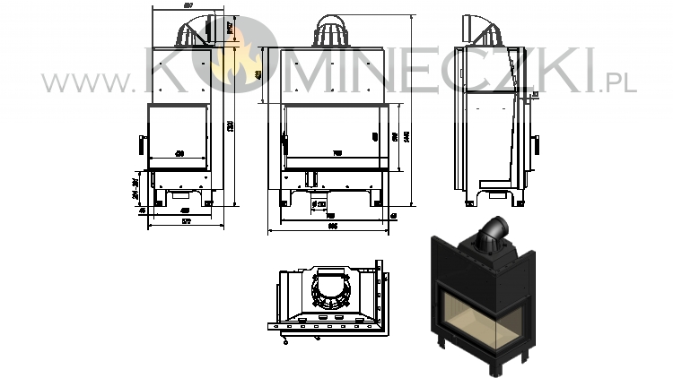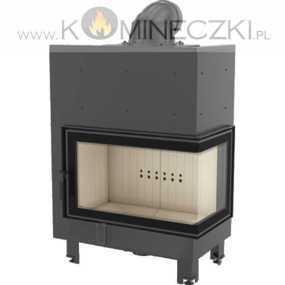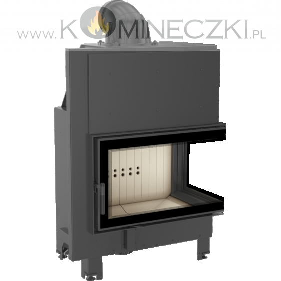 Wkład kominkowy z dwoma szybami zestawionymi ze sobą pod kątem prostym (szyby łączone bez szprosa).