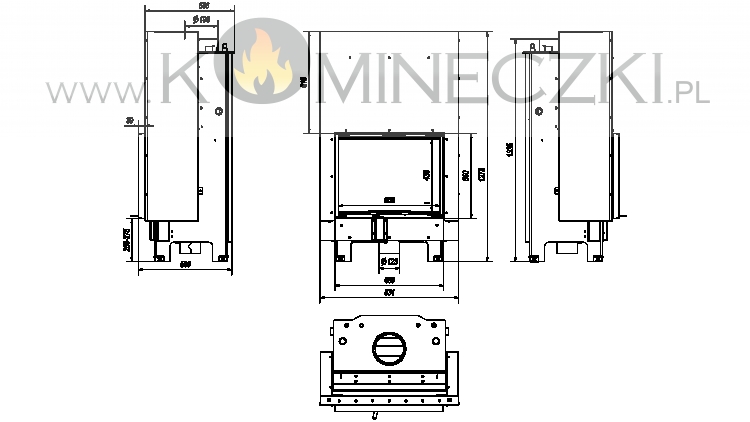 Dekoracyjna szyba typu glass wytrzymująca temperaturę do 800°C, która nadaje kominkowi nowoczesny i elegancki wygląd, optycznie powiększa front wkładu.