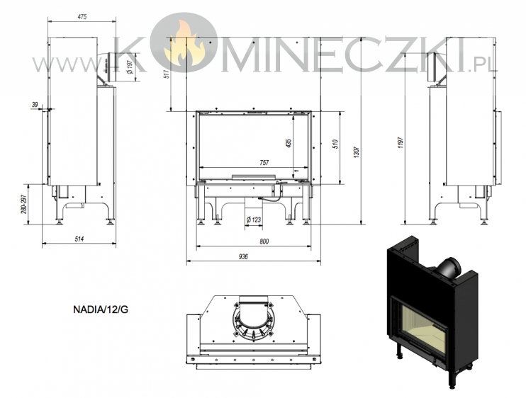 Front wkładu wyposażony w szybę żaroodporna wytrzymująca temperaturę do 800°C.