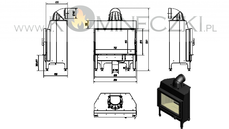 Front wkładu wyposażony w szybę żaroodporna wytrzymująca temperaturę do 800°C.