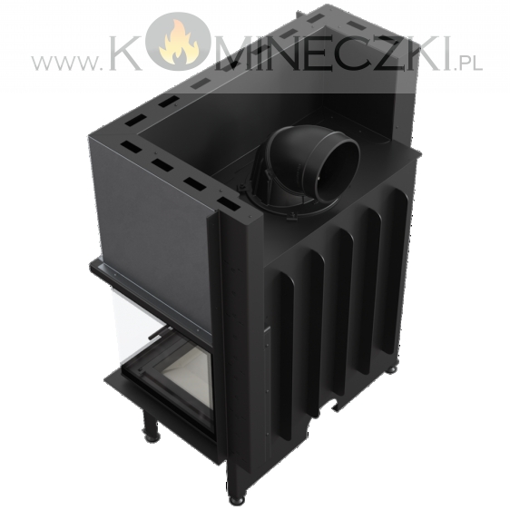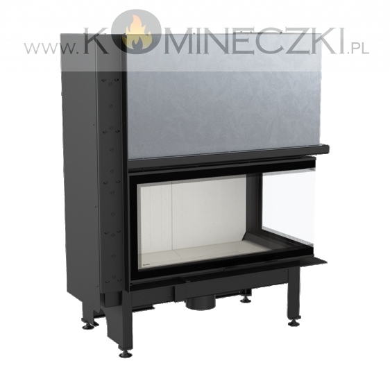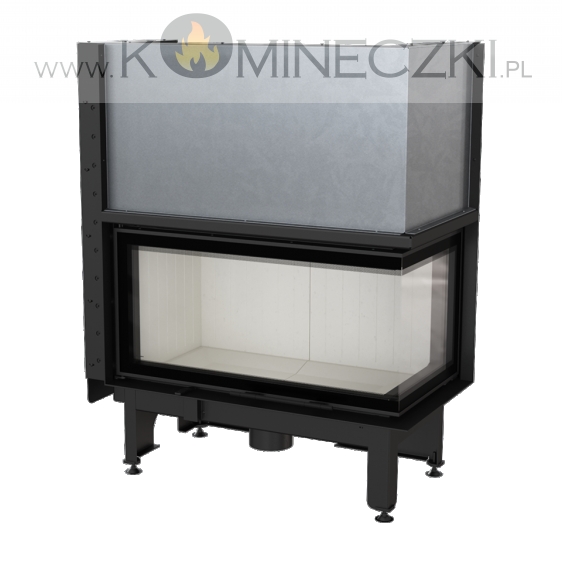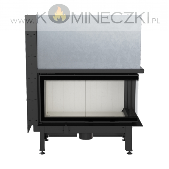 Wkład kominkowy z dwoma szybami zestawionymi ze sobą pod kątem prostym (szyby łączone bez szprosa).