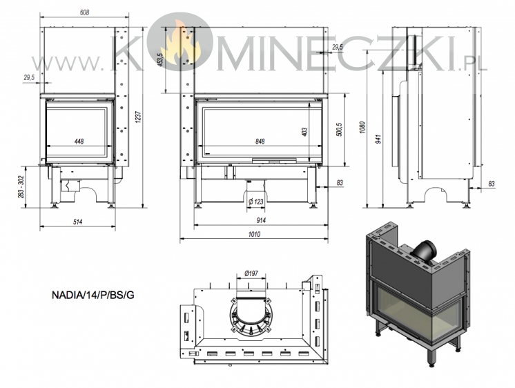 Potrójny system dopowietrzenia komory spalania: powietrze pierwotne - skierowane jest na płytę, na której odbywa się spalania; powietrze wtórne dostarczane jest otworami w tylnej ścianie. Dodatkowo we wkładzie zastosowany jest system czystej szyby (kurtyna powietrza).