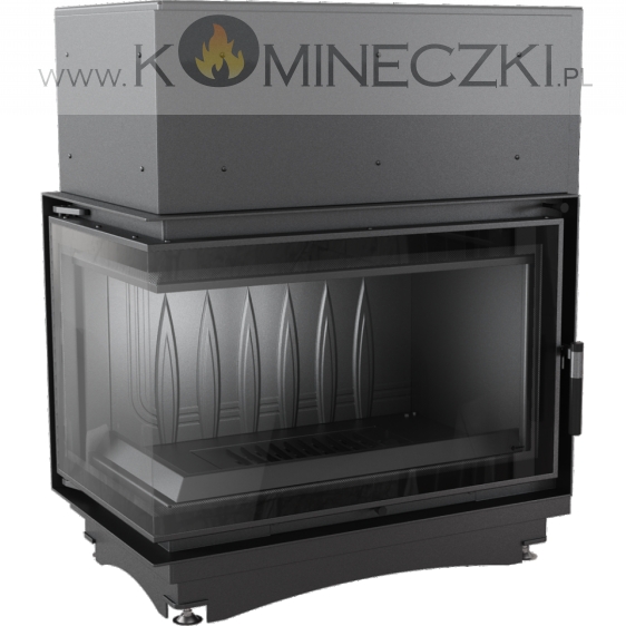 Wkład kominkowy z dwoma szybami zestawionymi ze sobą pod kątem prostym (szyby łączone bez szprosa).