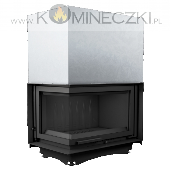 Wkład kominkowy z dwoma szybami zestawionymi ze sobą pod kątem prostym (szyby łączone bez szprosa).