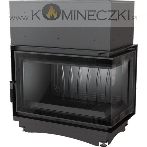Wkład kominkowy z dwoma szybami zestawionymi ze sobą pod kątem prostym (szyby łączone bez szprosa).