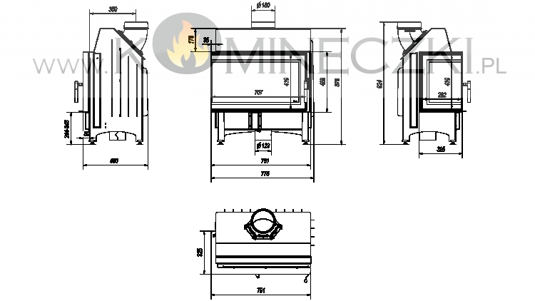 Dodatkowo we wkładzie zastosowany jest system czystej szyby (kurtyna powietrza), czyli powietrze dostarczane jest bezpośrednio na szybę poprzez system kanałów umieszczonych na bokach kominka. W ten sposób dostarczany jest tlen do górnej części komory spalania, w której następuje dopalanie gazów powstałych w procesie spalania drewna, co dodatkowo ogranicza emisję szkodliwego CO do atmosfery.
