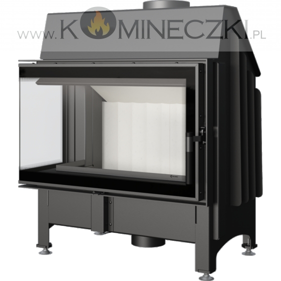 Wkład o ciekawym kształcie, z bocznym przeszkleniem, wyposażony w dekoracyjną szybę typu glass. Dzięki dwustronnej wizji ognia i delikatnej ramie frontowej doskonale wpisuje się w stylistykę nowoczesnych wnętrz. Tego typu kominek jest często wybierany w przypadku otwartych pomieszczeń, w których łączone są różne przestrzenie, np. salon z jadalnią.