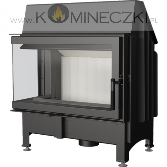 Wkład kominkowy z dwoma szybami zestawionymi ze sobą pod kątem prostym (szyby łączone bez szprosa).