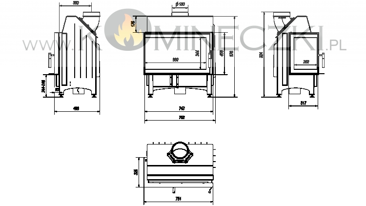 Wbudowany dolot powietrza fi 125, który zapewnia doprowadzenie świeżego powietrza do paleniska z zewnątrz budynku, co wpływa na lepsze spalanie.