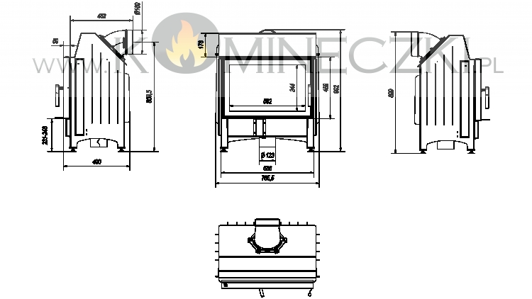 Wbudowany dolot powietrza fi 125, który zapewnia doprowadzenie świeżego powietrza do paleniska z zewnątrz budynku, co wpływa na lepsze spalanie.