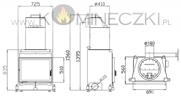 | średnica wylotu spalin: | 180 mm (zew.) / 170 mm (wew.) |