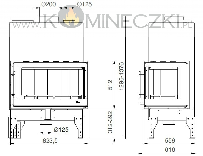 Wkład kominkowy UNIFLAM 860 EVO PBS gięta prawa boczna szyba ref. 260-182-GS
